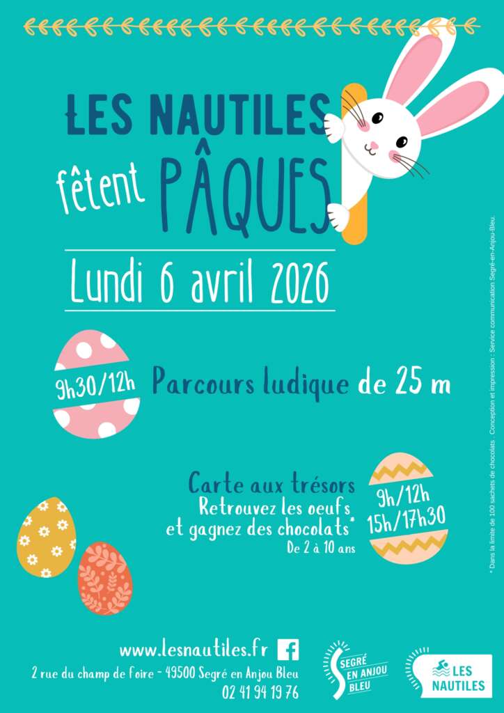 Les samedis des vacances scolaires de 9h à 12h30 au centre aquatique Les Nautiles. Bassin ludique aménagé. Idéalement chauffé pour les plus petits Infos : 02 41 94 19 76