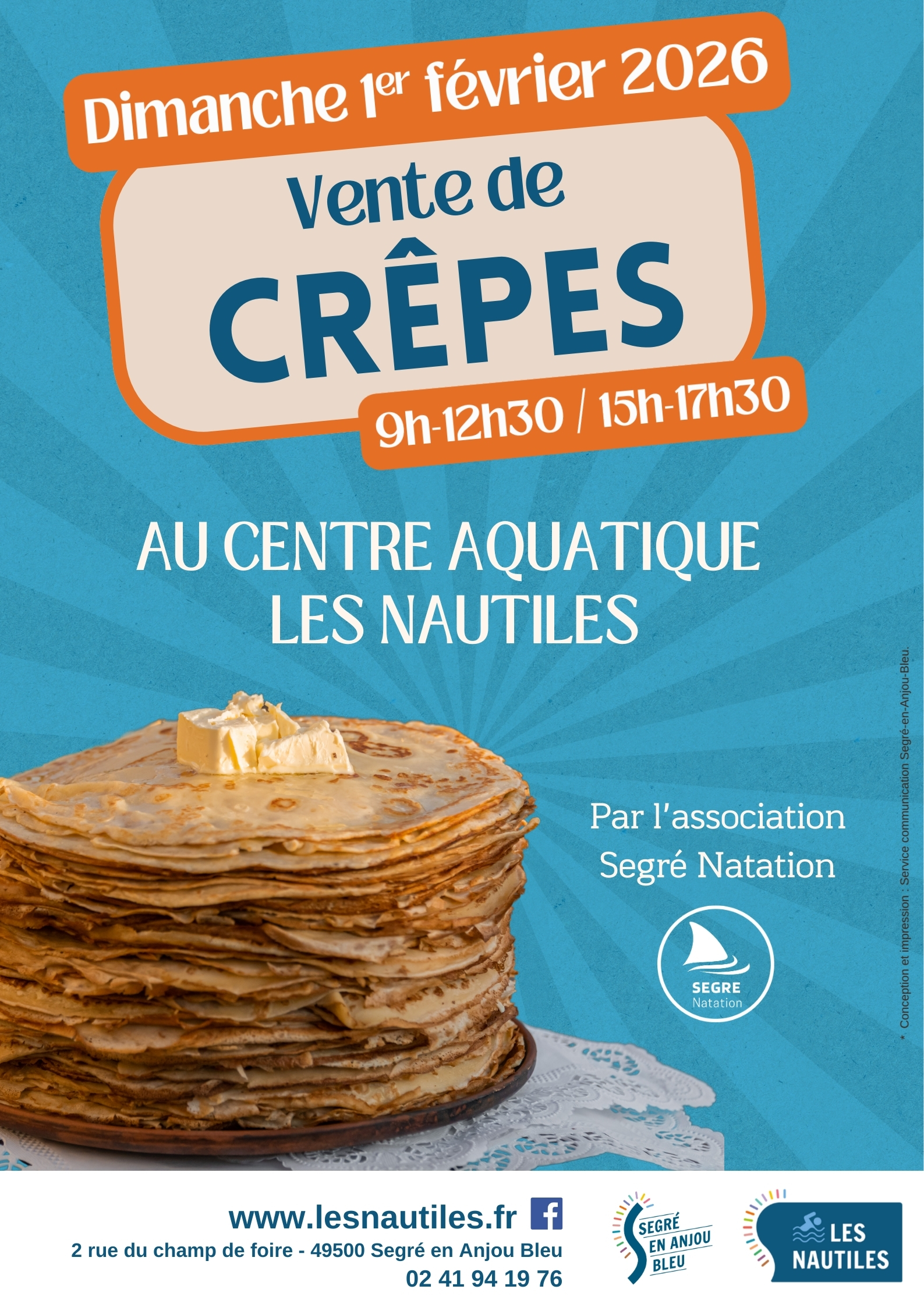 « Tous les Évènements Vente de crêpes février 1 « Galette des rois Saint Valentin » Vente de crêpes de 9h à 12h30 et de 15h à 17h30 par Segré Natation Ajouter au calendrier Google Agenda iCalendar Outlook 365 Outlook Live Détails Date: février 1